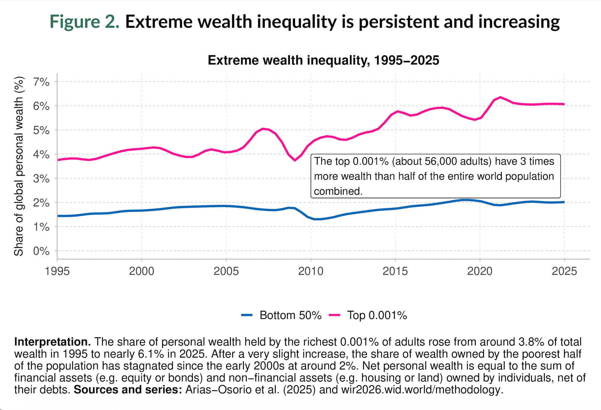 56 тысяч человек владеют втрое большим состоянием, чем половина человечества: ключевые выводы World Inequality Report 2026