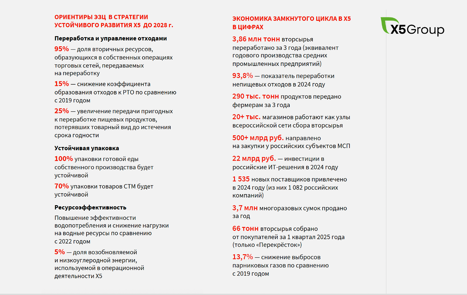 Федеральный проект «Экономика замкнутого цикла» создаёт стратегическую рамку и устанавливает для участников рынка целевые показатели, но для их достижения необходим комплекс мер по нескольким направлениям. Подробнее – в материале директора по устойчивому развитию Х5 Марии Подкопаевой.