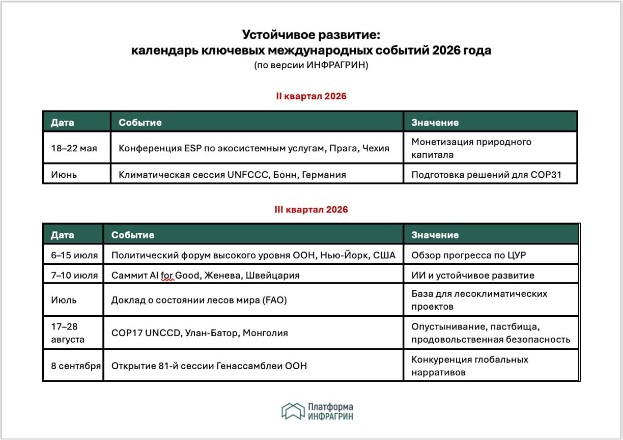 Устойчивое развитие: календарь ключевых международных событий 2026 года