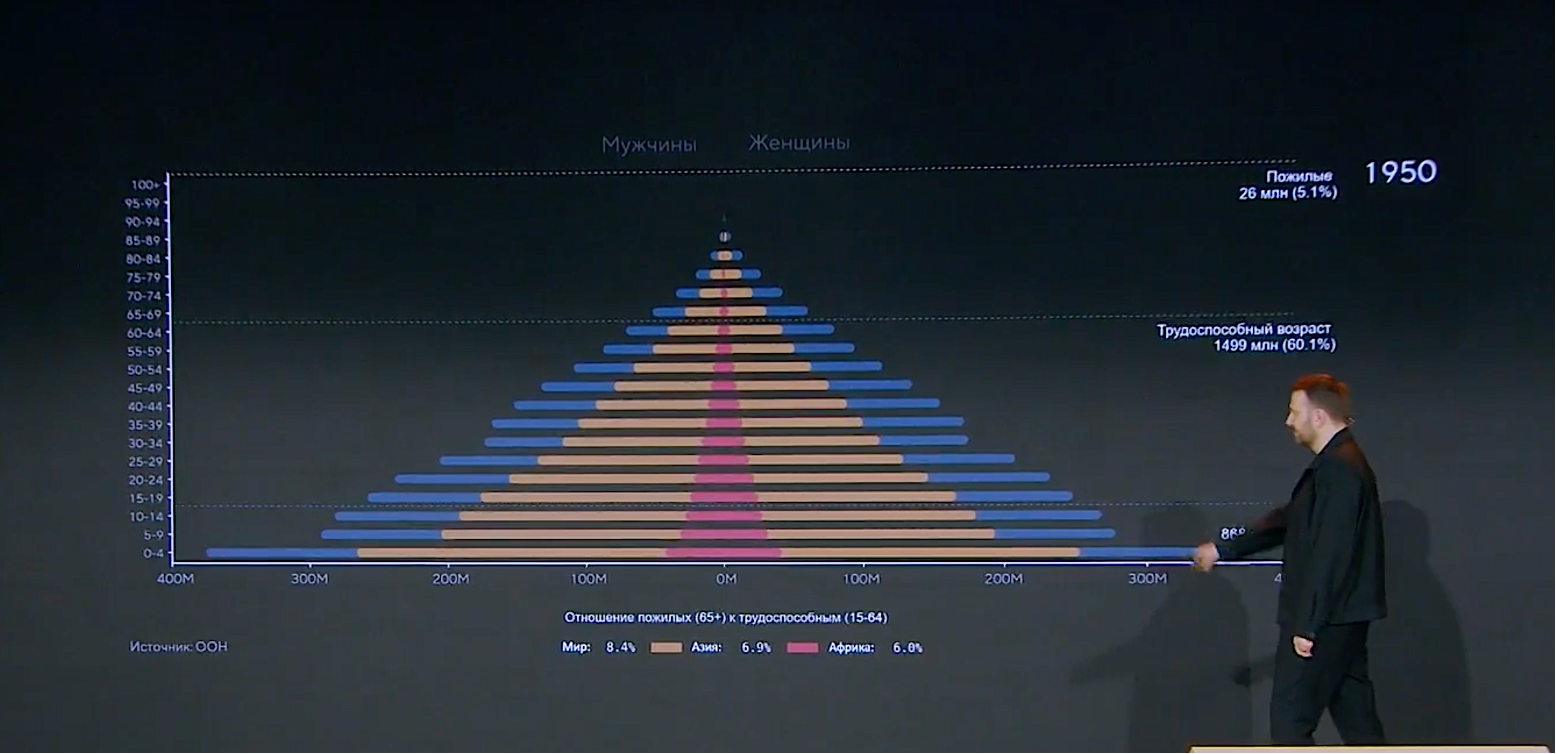 Именно этим спикер объяснил агрессивные инвестиции Китая в промышленную роботизацию и автоматизацию — страна движется по этому пути как ответ на надвигающийся демографический дисбаланс. Отдельно спикер указал на роль социальных сетей как одного из факторов снижения рождаемости в последнее десятилетие — через сокращение прямого человеческого общения и поляризацию общества.