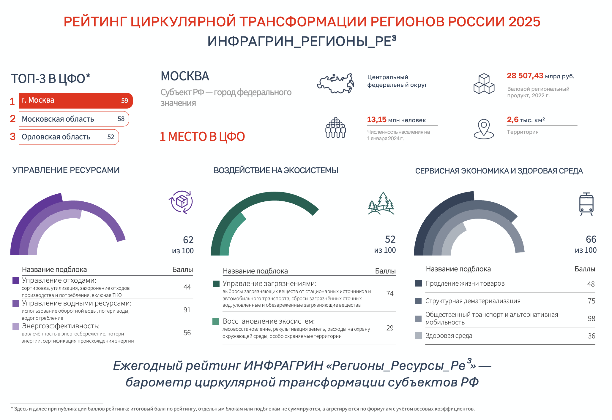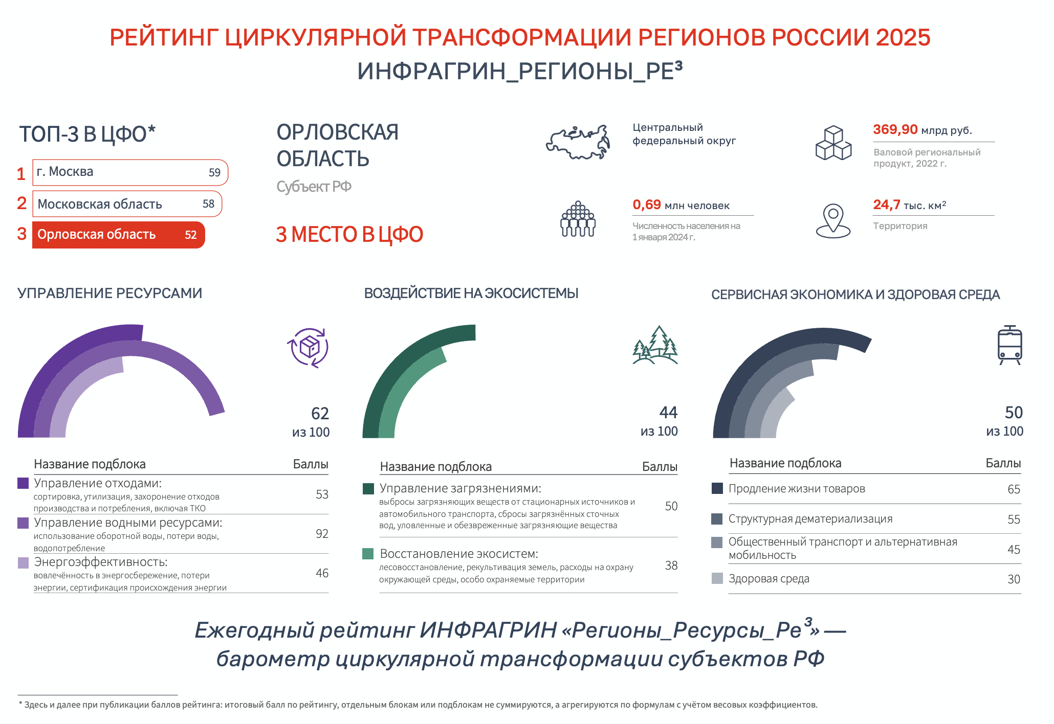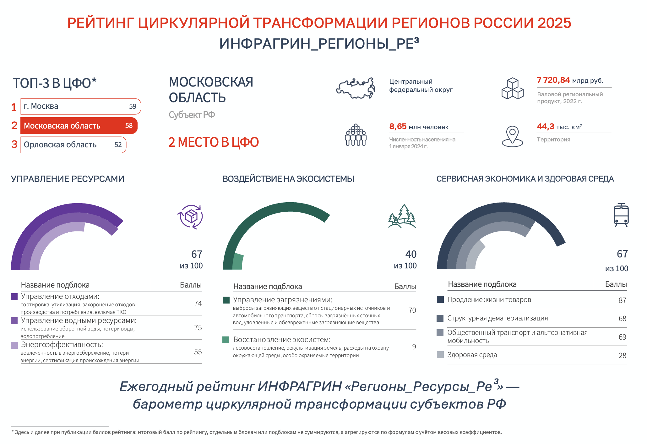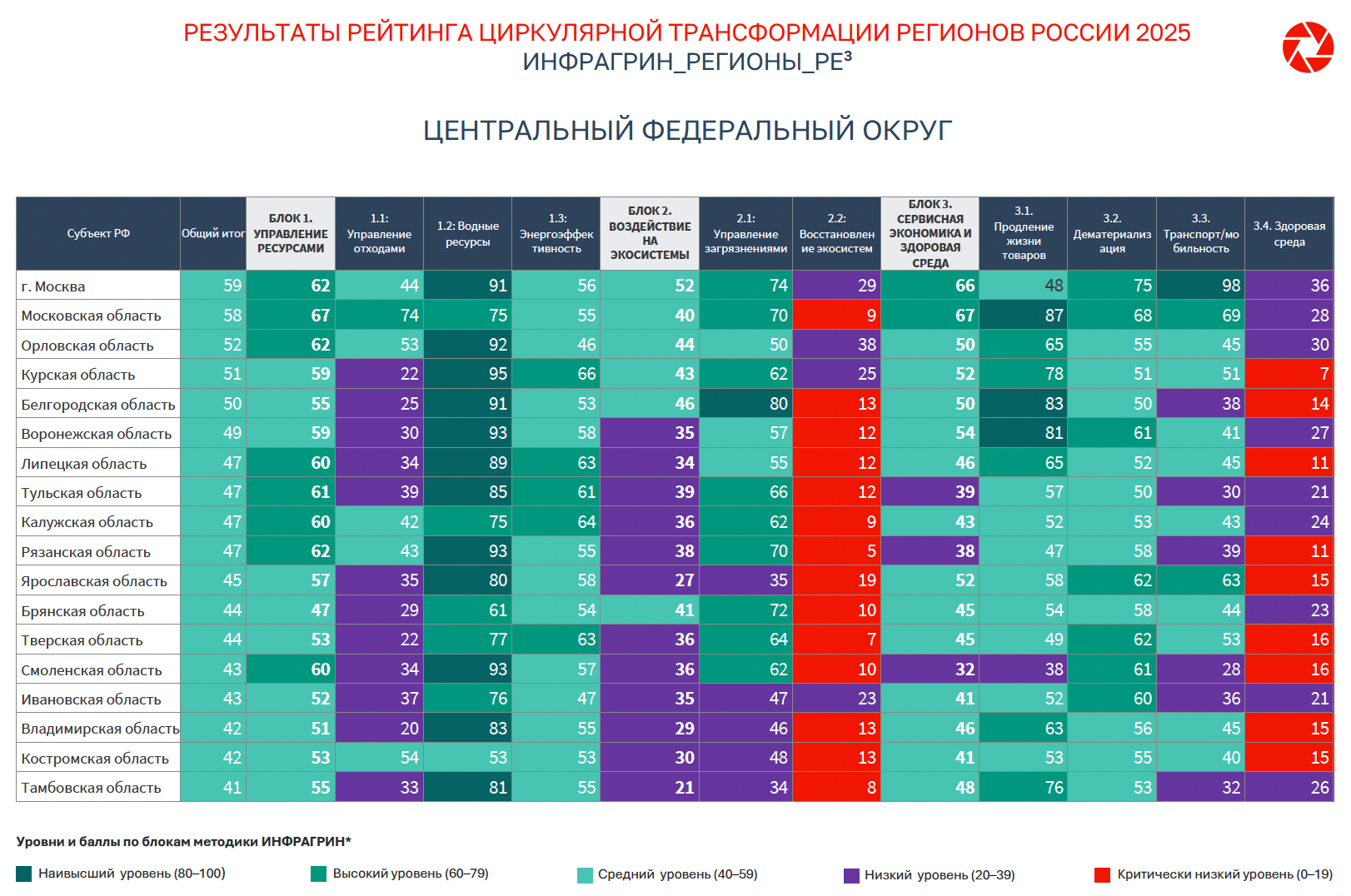 Результаты рейтинга циркулярной трансформации регионов России 2025 ИНФРАГРИН_РЕГИОНЫ_РЕ³ по ЦФО