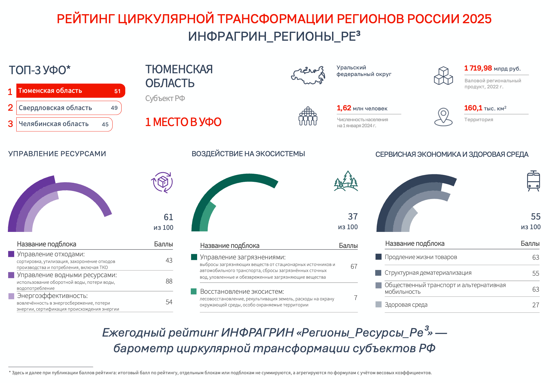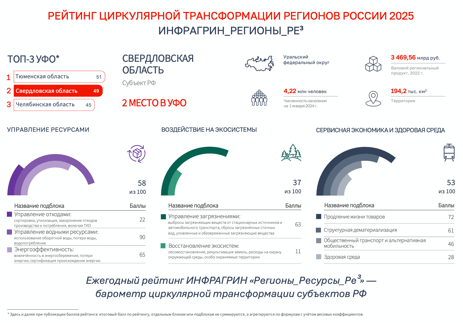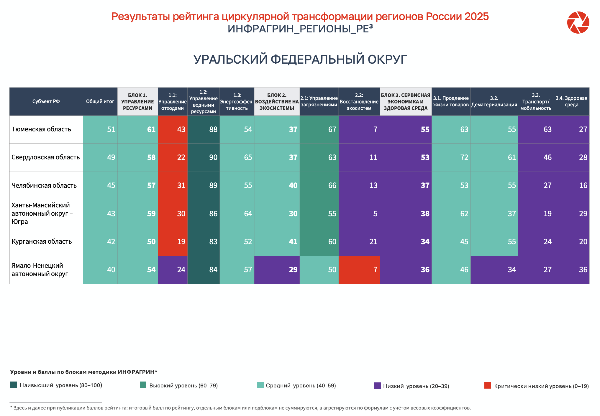 Результаты рейтинга циркулярной трансформации регионов России 2025 ИНФРАГРИН_РЕГИОНЫ_РЕ³ по УФО