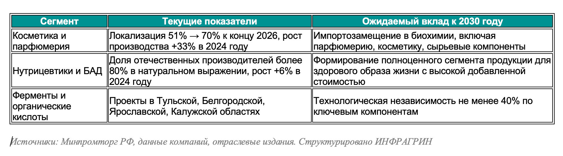 Второй контур биоэкономики — косметика, нутрицевтики, пищевые биотехнологии — развивается по иной логике, чем фармацевтика. Здесь меньше государственного принуждения и больше рыночных стимулов: потребитель голосует рублём за натуральность, осознанное потребление и локальное происхождение. Это создало условия, при которых часть импортозамещения произошла органично, без субсидий и нацпроектов.